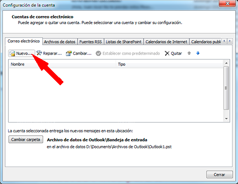 Apareciendo esta ventana, en la que haremos clic sobre "Nuevo", dentro de la pestaña "Correo electrónico":
