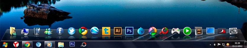 Y hasta aquí los programas imprescindibles para la buena marcha de nuestro PC. Ahora vamos a recomendaros algo que se esta poniendo de moda y es la instalación de un Dock. Que que es un Dock?, os acordáis de la barra inferior de los sistemas Mac donde se podían mover programas carpetas y accesos directos para ejecutarlos desde ahí?. Pues eso es un Dock,. Para Windows hay varios pululando por Internet, desde aquí os recomendamos el Nexus Dock, ya que tiene un montón de opciones de configuración y además tiene versión gratuita, además de instalarse en Español. Lo podéis descargar desde aquí. Para que os hagáis una idea os dejo una captura.