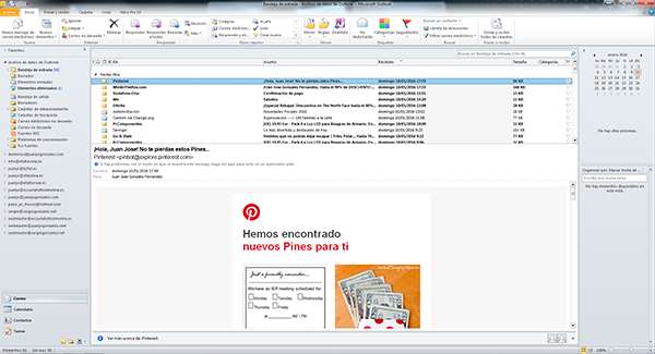 Una vez tenemos todos estos datos, pasamos a configurar nuestro correo en el programa Outlook 2010. Aclarar que aunque aquí vamos a ver la configuración en Outlook, los demás programas de correo, cada uno con sus peculiaridades, no son muy diferentes de este. En primer lugar abriremos Outlook 2010, clicando el icono correspondiente, en vuestra pantalla veréis algo así: